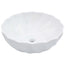 Denne runde håndvask er lavet af keramik med et blomsterdesign, og den vil være en chik og tidløs tilføjelse til ethvert badeværelse eller toilet.