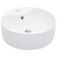 Denne runde håndvask er lavet af keramik, og den vil være en chik og tidløs tilføjelse til ethvert badeværelse eller toilet.