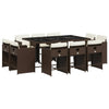 spisebordssæt til haven 13 dele med hynder polyrattan brun