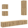 TV-skabssæt i 5 dele Vægmonteret Håndværks eg egetræsfarve