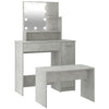 makeupbordssæt med LED-lys konstrueret træ betongrå