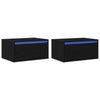 væghængte sengeborde 2 stk. med LED-lys sort egetræsfarve