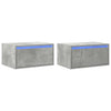 væghængte sengeborde 2 stk. med LED-lys betongrå
