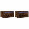 væghængte sengeborde 2 stk. med LED-lys røget egetræsfarve
