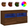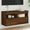 væghængt tv-bord med LED-lys 80x31x35 cm brun egetræsfarve