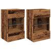 væghængte skabe til TV 2 stk. med LED-lys 40x30x60,5 cm antikt træ
