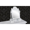 Dette smukke toiletbord har mange overdådige detaljer. Det fine håndværk giver det et klassisk og elegant look. Et stilfuldt, firkantet spejl er placeret i midten. Spejlet kan justeres i forskellige vinkler efter behov. Foden har to små skuffer, der kan rumme dine værdigenstande. Denne toiletbord...