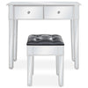 Spejl-kosmetikbordet og skamlen giver din boligindretning et strejf af elegance. Makeupbordssættet er udsmykket med elegant spejlglas og udstråler en raffineret stil. Makeupbordet og skamlen har et robust MDF-stel. De to skuffer tilbyder rigelig plads til at holde alle slags småting organiseret ...