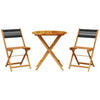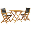 bistrosæt 3 dele med sorte hynder massivt teaktræ