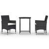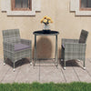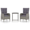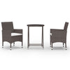 bistrosæt til haven 3 dele polyrattan og hærdet glas grå