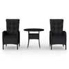 bistrosæt til haven 3 dele polyrattan og hærdet glas sort