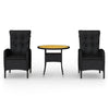bistrosæt til haven 3 dele polyrattan og massivt træ sort