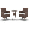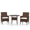 bistrosæt til haven 3 dele polyrattan og hærdet glas brun