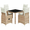 bistrosæt til haven 3 dele polyrattan og hærdet glas beige