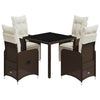 bistrosæt til haven 5 dele med hynder polyrattan brun