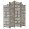4-panels rumdeler håndskåret 160x165 cm massivt mangotræ grå
