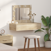 Dette rektangulære makeupbord med LED-lys giver et dejligt touch til ethvert soveværelse og kombinerer stil med funktion. Med sit rustikke udseende er det perfekt for dem, der elsker lidt robust elegance. Bordet er lavet af konstrueret træ, så det er både pålideligt og ser flot ud. Det er kompakt...