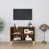 tv-bord med massive træben 69,5x30x50 cm brun eg