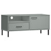 tv-bord med metalben OSLO massivt fyrretræ grå