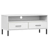 tv-bord med metalben OSLO massivt fyrretræ hvid