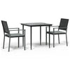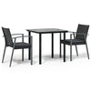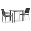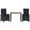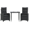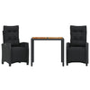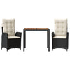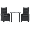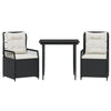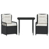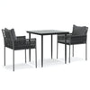 spisebordssæt til haven 3 dele med hynder polyrattan sort