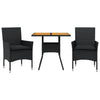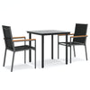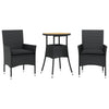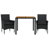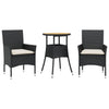 spisebordssæt til haven 3dele m. hynder polyrattan og glas sort