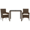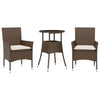 spisebordssæt til haven 3dele m. hynder polyrattan og glas brun