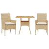 spisebordssæt til haven 3dele m. hynder polyrattan akacie beige