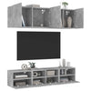 tv-møbel til væg 4 dele med LED-lys konstrueret træ betongrå