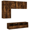 tv-møbel til væg 4 dele konstrueret træ røget egetræsfarve