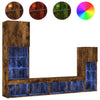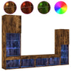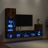 tv-møbel til væg 4 dele med LED-lys konstrueret træ røget eg