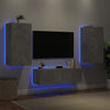 tv-møbel til væg 4 dele med LED-lys konstrueret træ grå sonoma