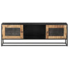 Giv dit interiør et strejf af elegance og bekvemmelighed med dette trendy tv-bord i træ! Dette hi-fi-skab er fremstillet af ru mangotræ og jern, så det er slidstærkt og robust. Den har en robust hårdttræstop, hvorpå du kan placere dit tv, router, multimedieapparater, billedrammer, frugtkurve elle...