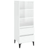 Dette klassiske højskab er et dekorativt og praktisk supplement til dit hjem. Slidstærkt materiale: Dette skab er fremstillet af konstrueret træ. Konstrueret træ har en enestående kvalitet med en glat overflade, og det er både stærkt, stabilt og fugtafvisende. Stabile metalfødder: Sideskabets me...