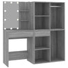 makeupbord med LED-lys og skabe konstrueret træ grå sonoma-eg