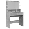 makeupbord med LED-lys 74,5x40x141 cm betongrå