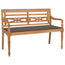 Batavia-bænk med gråbrun hynde 120 cm massivt teaktræ
