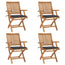 Dette møbelsæt er fremstillet af yderst slidstærkt teaktræ, som er ovntørret og derefter fintslebet, så det har en meget blød og glat overflade. Teaktræ er kendt for sin enestående styrke og vejrbestandighed, hvilket gør det langt mere velegnet til havemøbler i forhold til andre træsorter. Teaktræ er det perfekte valg, hvis du ønsker at købe langtidsholdbare møbler. Spisebordsstolene er vejrbestandige og lette at rengøre takket være den slebne overflade. De kan også foldes sammen for at spare plads, når de ikke er i brug. Derudover giver de medfølgende hynder ekstra komfort. Hver hynde er forsynet med 2 sæt snore for nem fastgørelse til stolen.