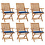 Dette møbelsæt er fremstillet af yderst slidstærkt teaktræ, som er ovntørret og derefter fintslebet, så det har en meget blød og glat overflade. Teaktræ er kendt for sin enestående styrke og vejrbestandighed, hvilket gør det langt mere velegnet til havemøbler i forhold til andre træsorter. Teaktræ er det perfekte valg, hvis du ønsker at købe langtidsholdbare møbler. Spisebordsstolene er vejrbestandige og lette at rengøre takket være den slebne overflade. De kan også foldes sammen for at spare plads, når de ikke er i brug. Derudover giver de medfølgende hynder ekstra komfort. Hver hynde er forsynet med 2 sæt snore for nem fastgørelse til stolen.