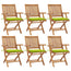 Dette møbelsæt er fremstillet af yderst slidstærkt teaktræ, som er ovntørret og derefter fintslebet, så det har en meget blød og glat overflade. Teaktræ er kendt for sin enestående styrke og vejrbestandighed, hvilket gør det langt mere velegnet til havemøbler i forhold til andre træsorter. Teaktræ er det perfekte valg, hvis du ønsker at købe langtidsholdbare møbler. Spisebordsstolene er vejrbestandige og lette at rengøre takket være den slebne overflade. De kan også foldes sammen for at spare plads, når de ikke er i brug. Derudover giver de medfølgende hynder ekstra komfort. Hver hynde er forsynet med 2 sæt snore for nem fastgørelse til stolen.