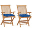 havestole med blå hynder 2 stk. massivt teaktræ
