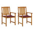 Disse havestole er fremstillet af massivt akacietræ, hvilket gør dem robuste og stabile. Hynderne tilføjer ekstra komfort. Hver hynde har to sæt snore, så de kan fastgøres til stolene.