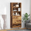 Konstrueret træmateriale Bygget af kvalitets konstrueret træ, holder dette highboard til ridser og daglig brug. Det er holdbart og bevarer sit flotte udseende i mange år. Spacious hylder De praktiske hylder organiserer let dit service. Uanset om det er til opbevaring eller visning af dekorationer, gør det enkle hyldedesign det nemt at få fat i tingene. Stærke stolpeben Highboardet har stolpeben i konstrueret træ, som giver stabilitet og støtte. Det er bygget til at holde og ser også godt ud. Funktionelt bagside-design Den flotte bagside gør, at du kan bruge highboardet både mod en væg og som rumdeler. Det giver fleksibilitet i indretningen og øger funktionaliteten i dit rum. Samling nødvendig Der kræves lidt samling, og værktøjer som skruetrækker, hammer, målebånd og boremaskine skal bruges. Hav gerne to personer til at hjælpe, så det bliver lettere og hurtigere.- Farve: Gammelt træ