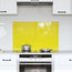 Denne moderne køkken backsplash kombinerer funktionalitet og stil, hvilket gør den til et must-have i enhver madlavningszone. Den lyse gule hærdet glas tilføjer ikke kun farve, men fungerer også som en beskyttelse mod sprøjt og pletter, så dit køkken forbliver pænt og passer ind i enhver indretning.