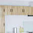 Det her træ-køkkenskab er designet med moderne stil og slanker det hele i dit køkken. Det robuste konstruerede træ sikrer, at det holder længe. Skabet tilføjer elegance med sine rene linjer og minimalistiske look. Det giver dig masser af opbevaringsplads med gennemtænkte rum og hylder. Uanset om det er til tallerkener eller pantryvarer, passer det perfekt ind i moderne køkkener og gør dit madlavningsområde mere funktionelt.