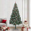 Dette plastiske juletræ kombinerer charmen fra et klassisk ferie centerpiece med bekvemmeligheden fra LED-belysning. Det er lavet til både indendørs og beskyttede udendørs rum. Det kegleformede design med fyrretræskegler og hvid sne skaber en festlig stemning, perfekt til at bringe juleånden ind i dit hjem, have eller terrasse. Dette smukke stykke bliver et klart julehit i enhver setting.