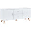 Denne skænk er lavet af MDF og træben, så den er yderst robust og holdbar. Det elegante design vil gøre den til en brugervenlig og særdeles dekorativ tilføjelse i dit hjem. Sideskabet har 2 skuffer og 2 opbevaringsrum, hvilket giver rigeligt med plads til at holde alle slags småting såsom nøgler, notesblokke, kuglepenne og andre sager organiseret og inden for rækkevidde. Desuden er den store topplade ideel til at placere multimedieapparater på eller til pyntegenstande. Den kan bruges som et skab, sideskab mv. Skabet er nemt at samle.