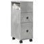 - Nem at flytte: Dette smalle badeværelsesskab er forsynet med fire hjul, så det kan nemt flyttes rundt. To af hjulene kan låses, hvilket holder skabet på plads og giver stabilitet.