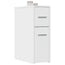 - Brugervenligt: Det smalle opbevaringsskab til badeværelset er forsynet med glideskinner i kvalitetsmetal samt elegante håndtag. Skufferne kan derfor nemt åbnes for nem adgang til dine ting.