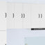 - Hængslede døre: Har slanke hængslede døre, der giver det moderne design et løft. Dørene sikrer smooth funktionalitet og giver et stilrent udseende, der passer til nutidige køkkener. De sorte stanghåndtag tilføjer en stilfuld kontrast, som både ser godt ud og er praktisk.